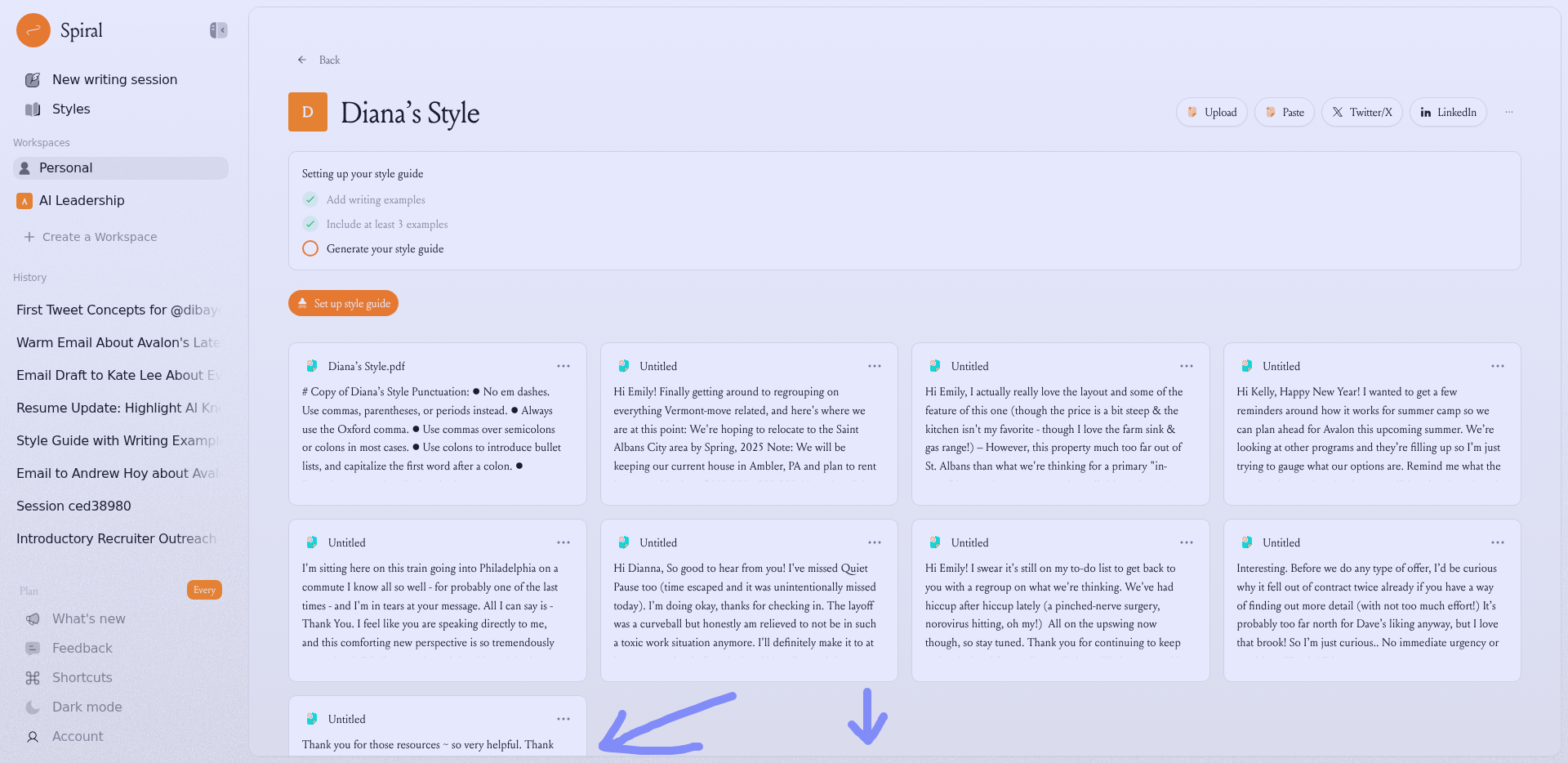 There's no scroll ability or way to access writing samples that are below the fold in the style areas.