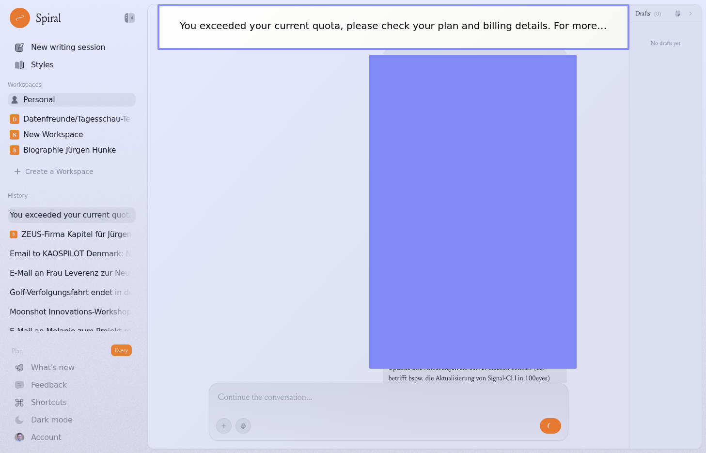 and if i click on billing ther ist no option to change that, add funds etc. (and it would be great to understand, how much “quota i have, have used, etc.