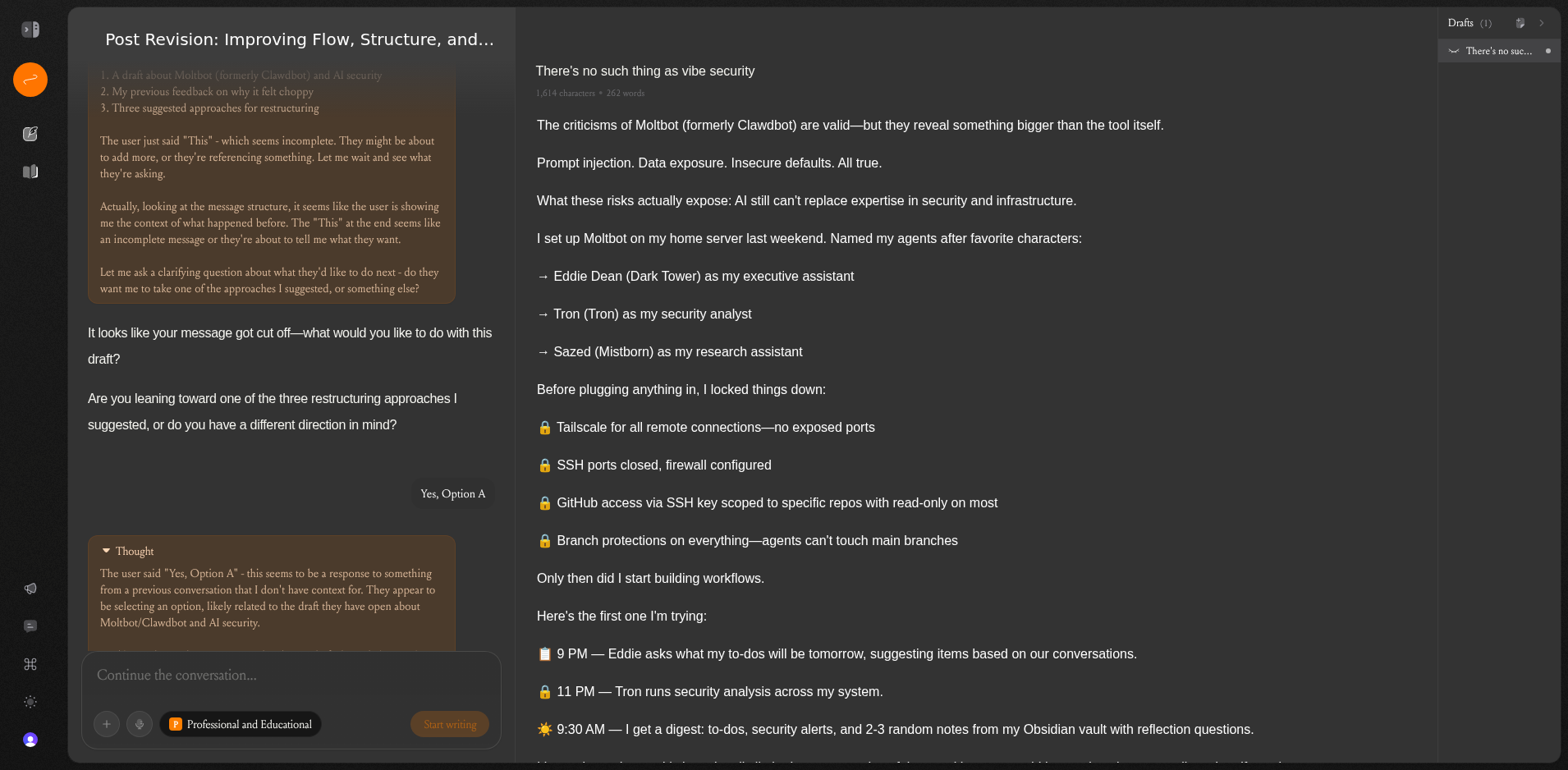 The agent has lost context multiple times when writing the draft. I have copy pasted it’s responses to try and inject context back in, but it keeps saying that my answers have been cut off for some reason